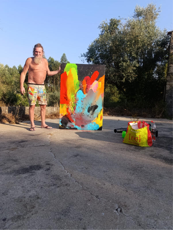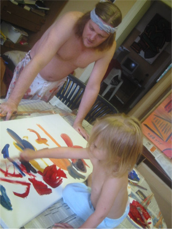 2018: EliYahu was living with Emunah, and their son, Ruben, in a yurt deep within the forest of Belgium. Their income coming from playing music on the streets. Perceived as poor by others, but feeling like millionaires. And then..... EliYahu took up the brush again—but this time his son Ruben, too, felt the pull, and together they painted, guided by the same calling.